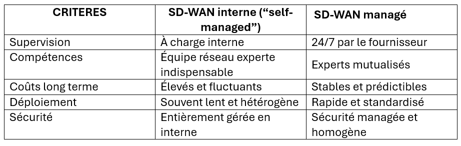 À l’inverse, dans un modèle managé, le fournisseur prend en charge l’exploitation du réseau au quotidien.